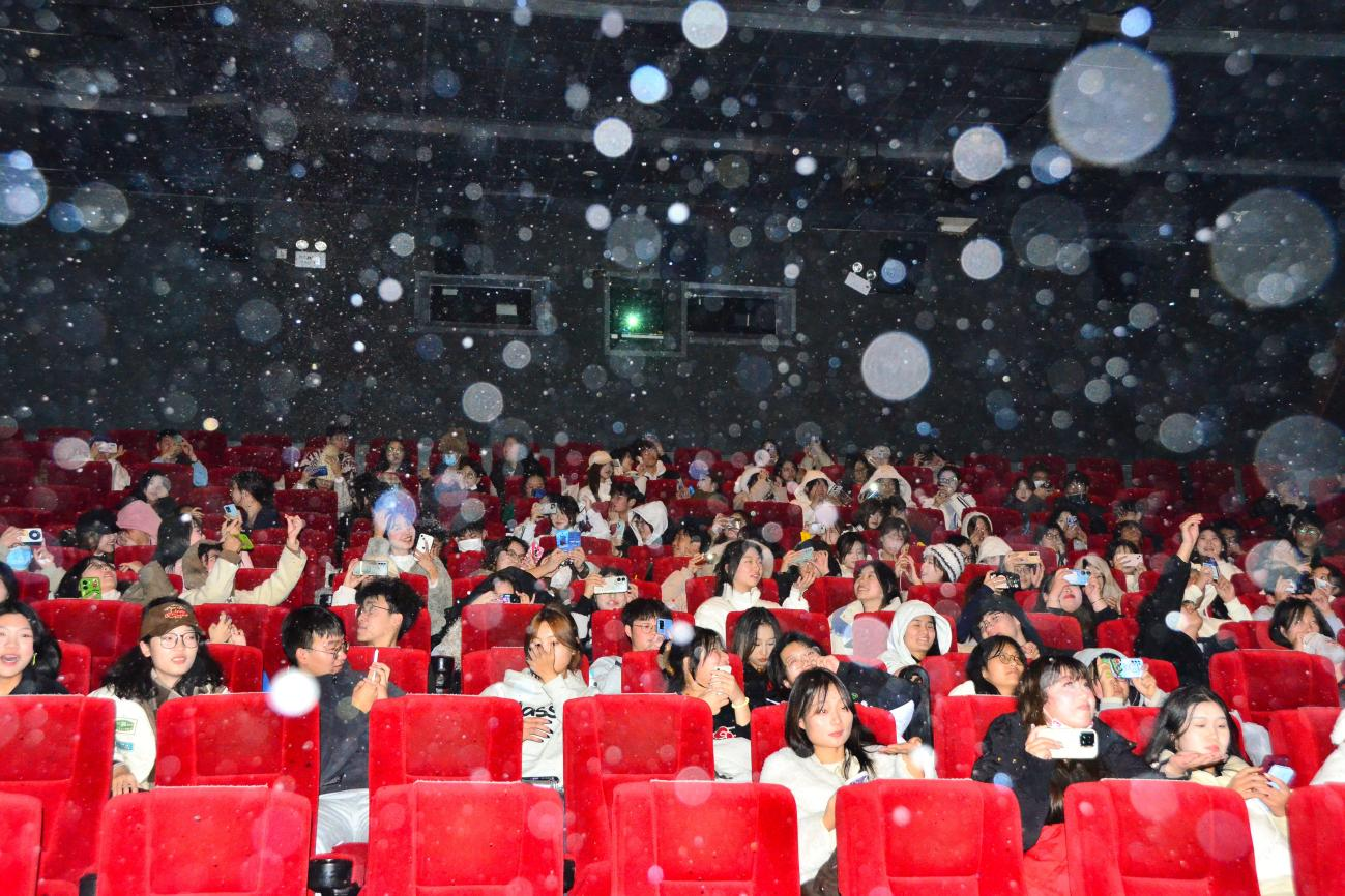 电影以奇幻爱情为主题,通过独特的叙事手法、动容的情感渲染和巧妙的时空设定为影片增添了神秘感和奇幻色彩。同时,影片也会给观众带来新的惊喜和思考,在下雪场的沉浸体验中,让学生们在感动中找到面对未来生活的力量和勇气。观影现场反响热烈,同学们纷纷表示,要把影片中关于成长、勇气和坚持的力量融入到日常学习和生活中去,以更加积极的态度去迎接未来与挑战。