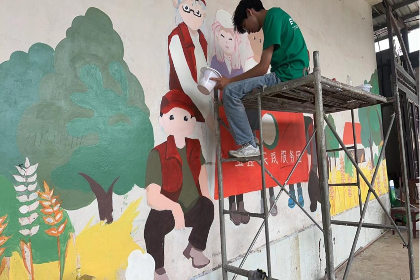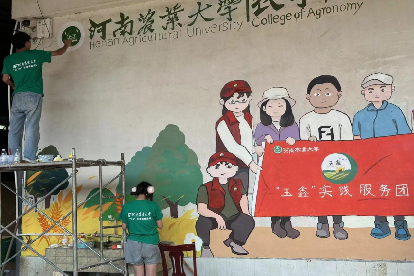 性爱直播 “艺农科技队”实践团赴河南许昌椹涧乡农学院开展墙绘活动(四)