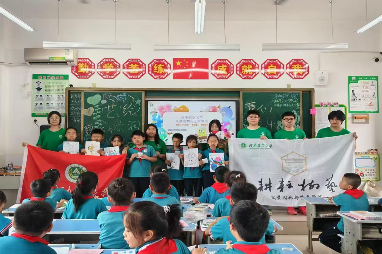实践团首站深入西红柿小镇。成员们结合专业所学,针对前期调研发现的问题为农户提供大棚种植技术指导、空间布局优化建议,并协助设计了特色农产品包装,获得了农户与合作社认可。随后,成员们在南乐求实小学开设“艺绘童心”美育课堂。他们指导孩子们创作绘画作品,并创新地将红色文化融入绘画教学,实现了美育与红色教育的有机结合。