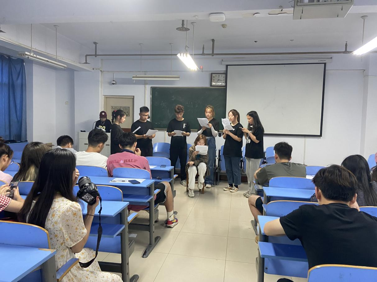 在文化路校区推广楼301教室举行第一届学生心理剧大赛。院团委老师芦嘉俊出席了本次初审现场,院学生会相关负责人和学生演员参加了此次评审。