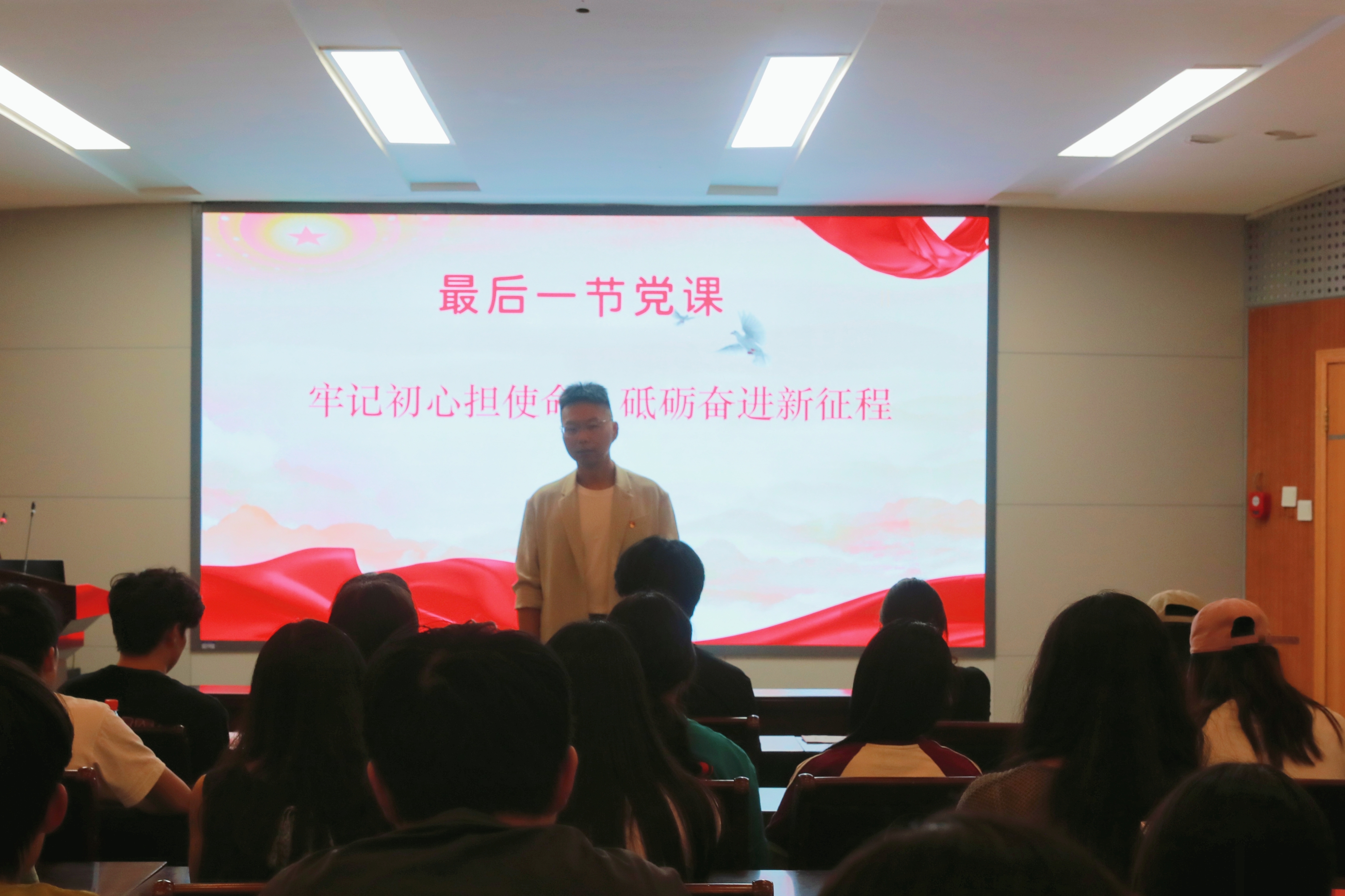 在文化路校区100人报告厅举行2025届毕业生党员“最后一堂党课”。院党委副书记赵九阳出席,学院全体毕业生党员共同参加。会议由正科级组织员李雨澍主持。
